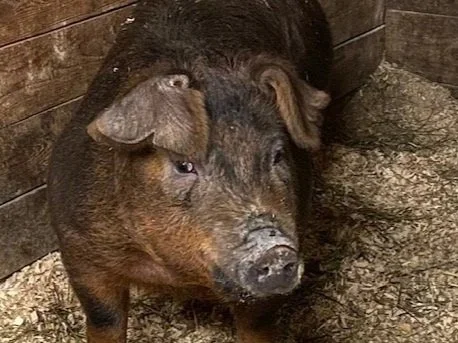 Marshmallow is will be bred this fall for spring of 2026 piglets. We are expecting some very well sized piglets from her.